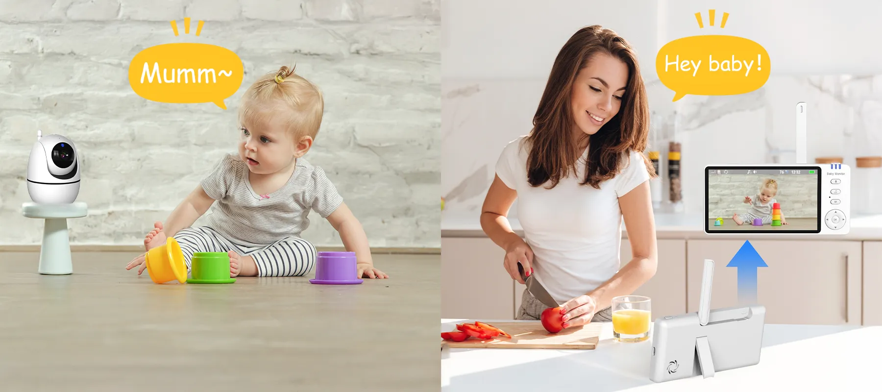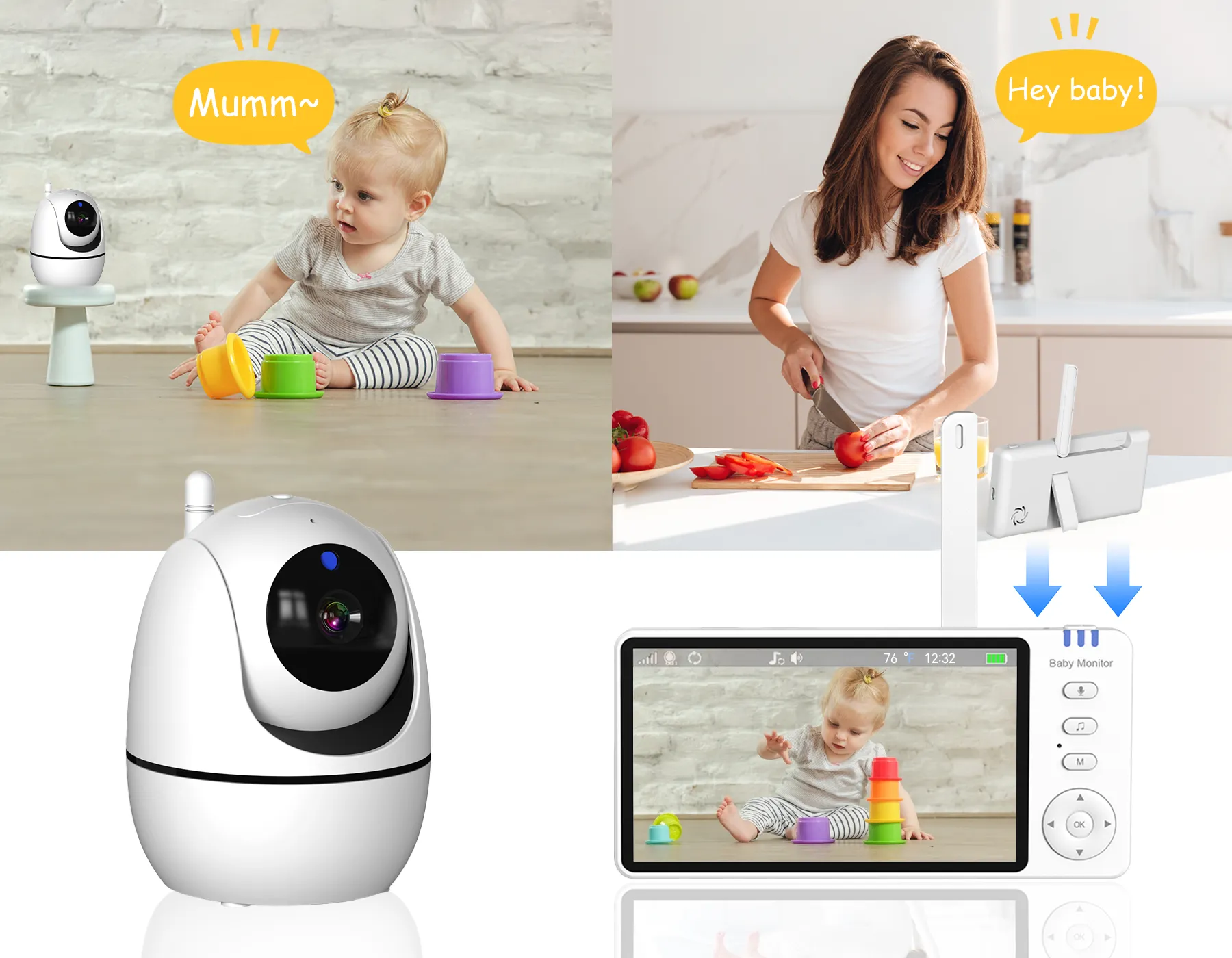 - Two-Way Talk: Comfort your baby from anywhere with real-time, two-way audio.