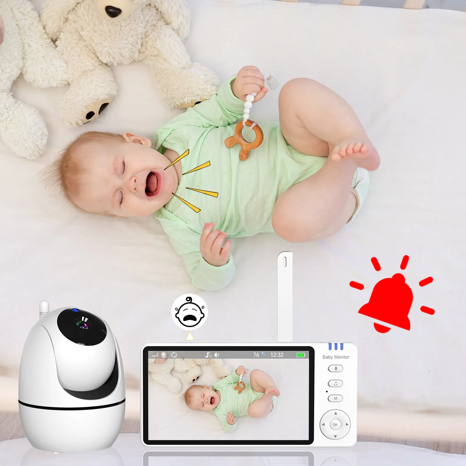 - Voice Activation (VOX): The screen turns on instantly when your baby makes a sound.