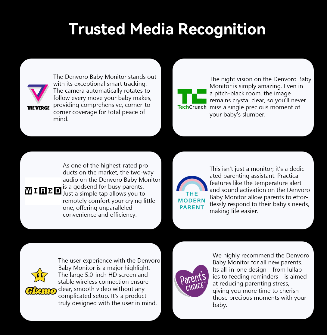 That’s why she created the Denvoro Baby Monitor. With HD video, two-way audio, and real-time alerts, it offers 360° all-round protection, giving parents peace of mind and the freedom to focus on what truly matters—enjoying every moment with their little one.